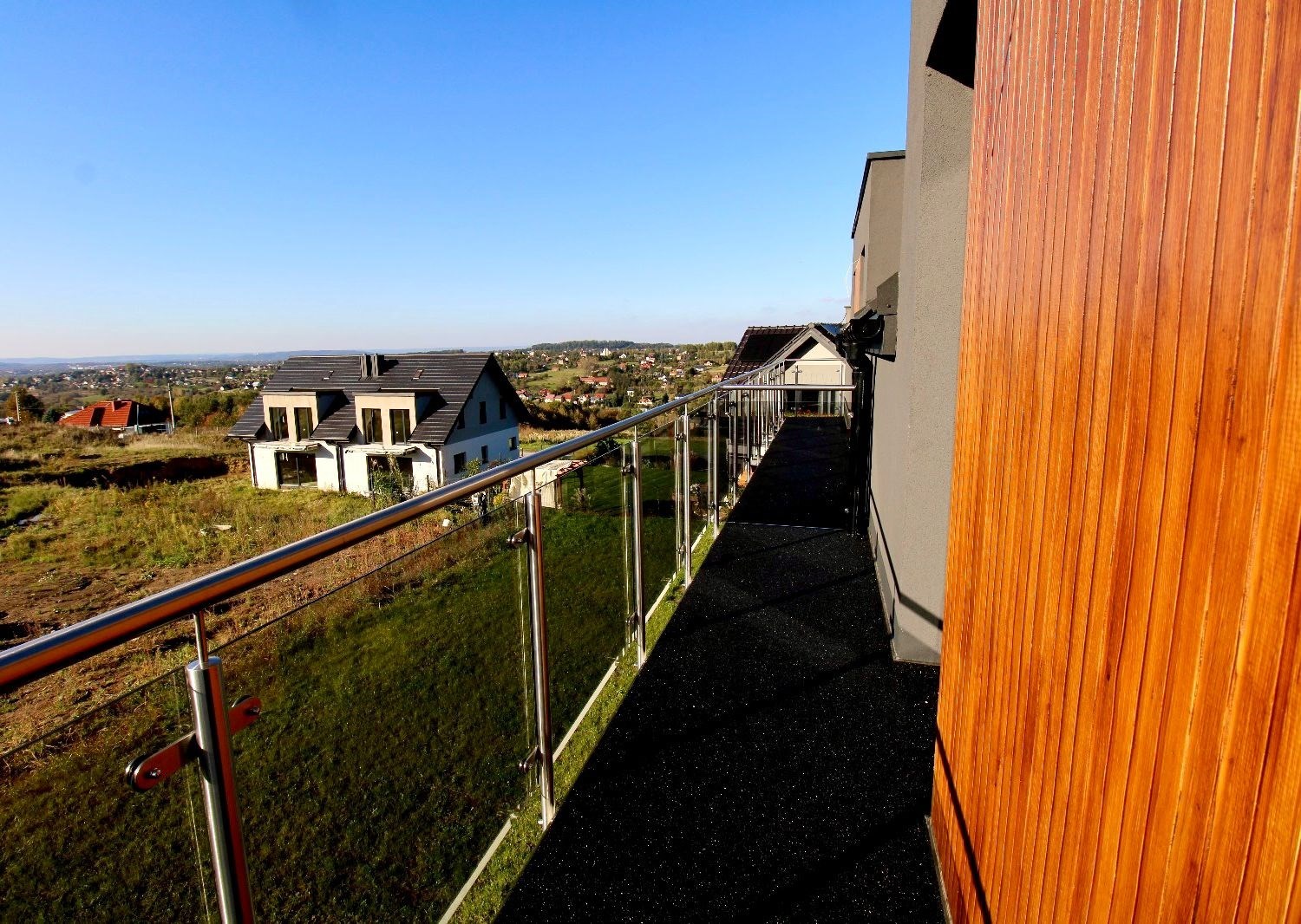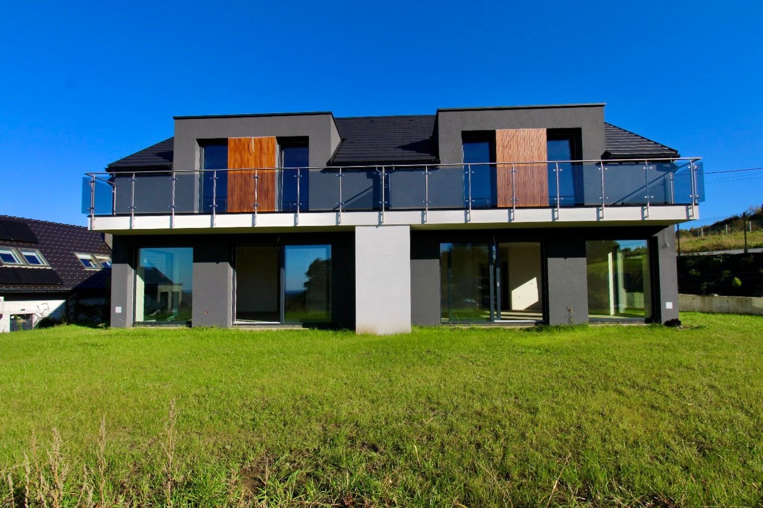 - Exclusive finishing touches – decorative elements „wood-style” and elegant glass balcony railings add a modern character to the house.