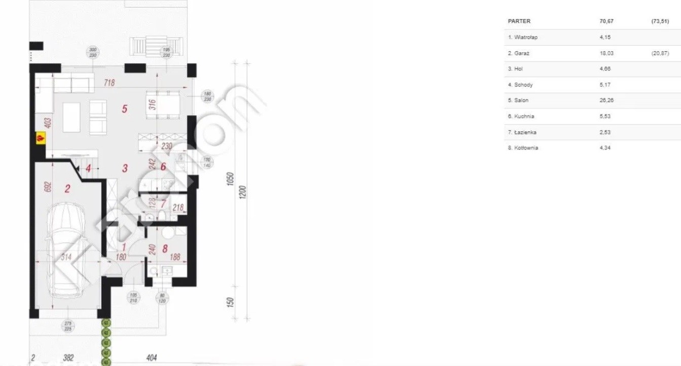 - Garaż w bryle budynku i dodatkowe miejsce parkingowe – komfort dla Twojego auta.