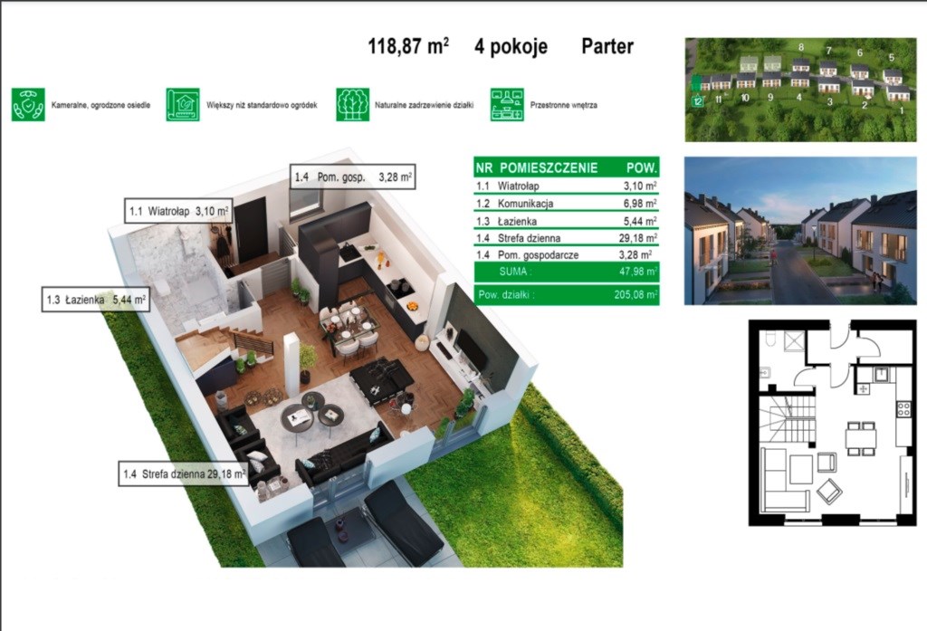 118,87 m² | 4 pokoje | ogród | miejsce parkingowe | stan deweloperski