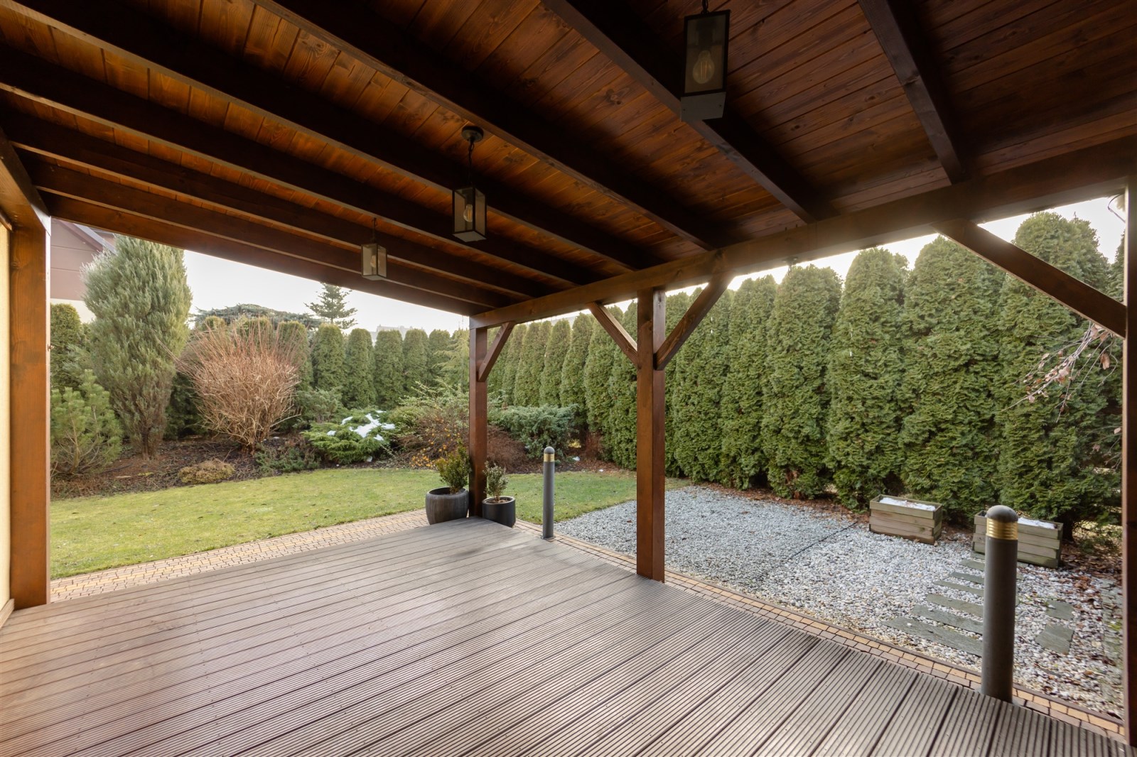 - Do domu przynależy taras wykonany z drewna egzotycznego oraz domek narzędziowy