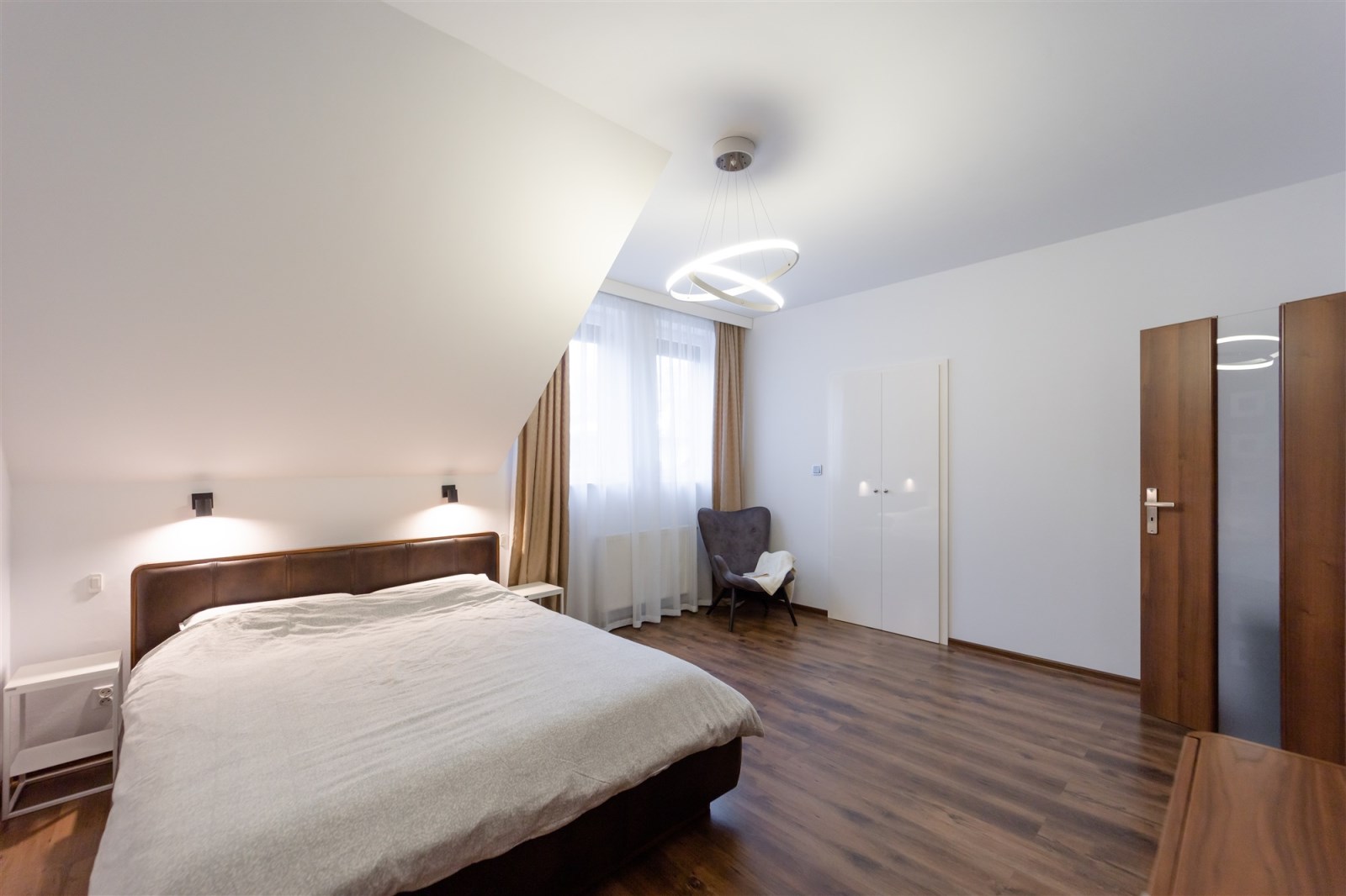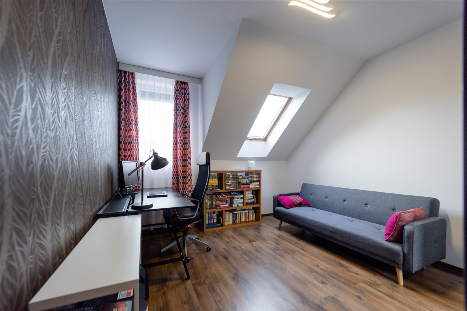 Poddasze: duża sypialnia z garderobą, sypialnia z balkonem, gabinet oraz łazienka z wanną i prysznicem.