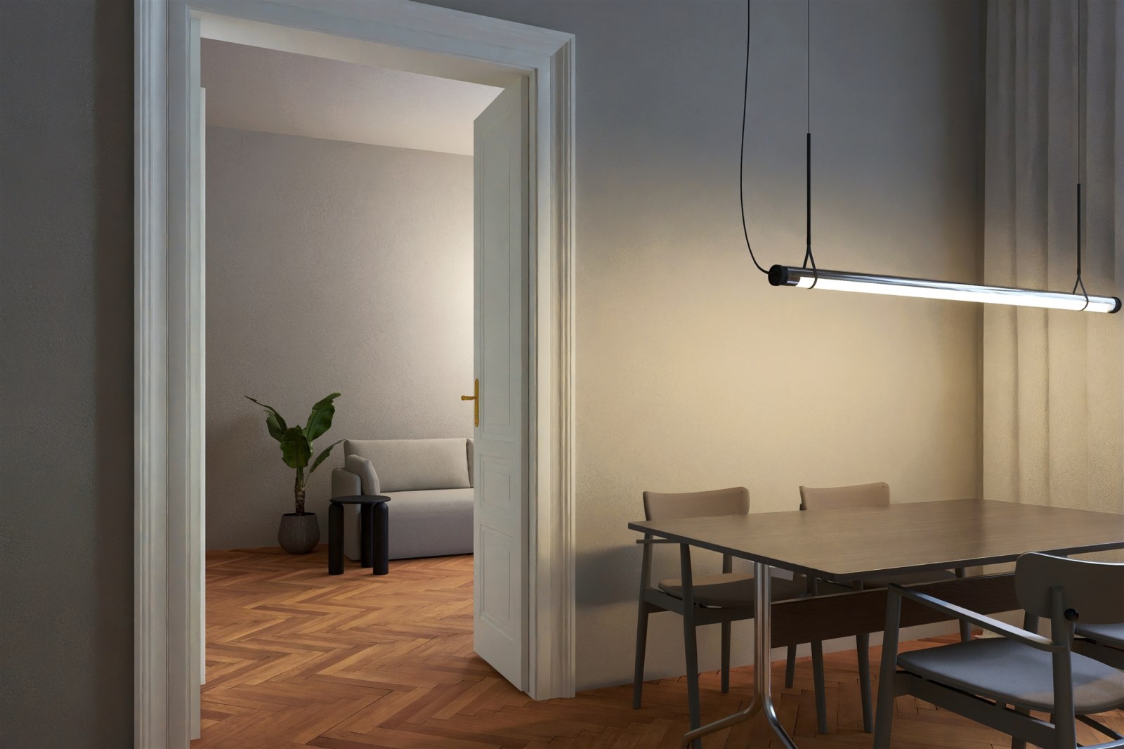 Mieszkanie posiada duże okna, przez co samo wnętrze jest dobrze doświetlone naturalnym światłem nadając przestrzeni wnętrzu.